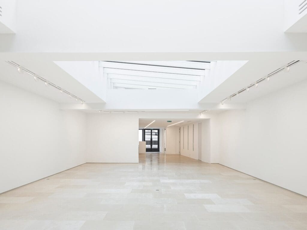 En contre point des volumes de la rue du cloître Saint Merri, que nous avons restructurés par le passé, et qui développent des volume irréguliers contraints par un bâti ancien, au bénéfice de certaines expositions, l’espace d’exposition de la nouvelle galerie exigeait, par la volonté de la galeriste, une géométrie parfaitement régulière, un « white cube », neutre à certains égards.