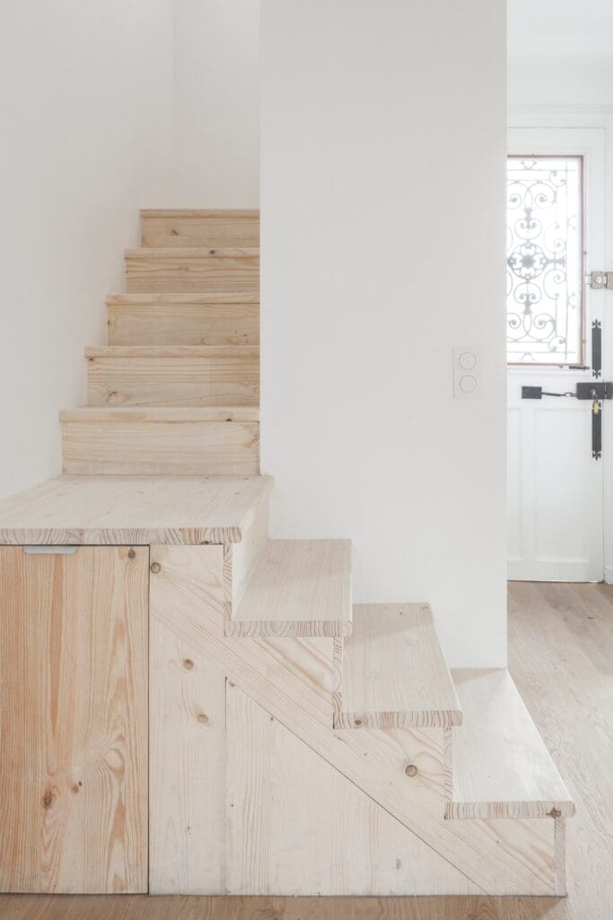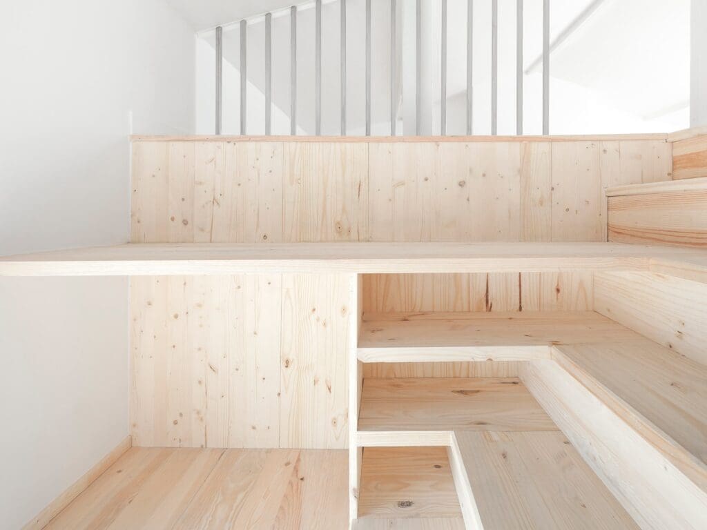 L’escalier, nouvelle colonne vertébrale de la maison, conçu et réalisé dans un espace contraint, parvient à assurer une distribution efficace et confortable de la maison. Nouveau liant vertical pour la maison, son bois clair et ses montants en acier rejoignant la sous face du toit, portent une identité. Enfin, espace de vie supplémentaire à part entière, ouvert sur les étages, l’escalier se transforme en bureau dans un palier élargi, profitant de la hauteur sous toiture à travers la trémie du comble.