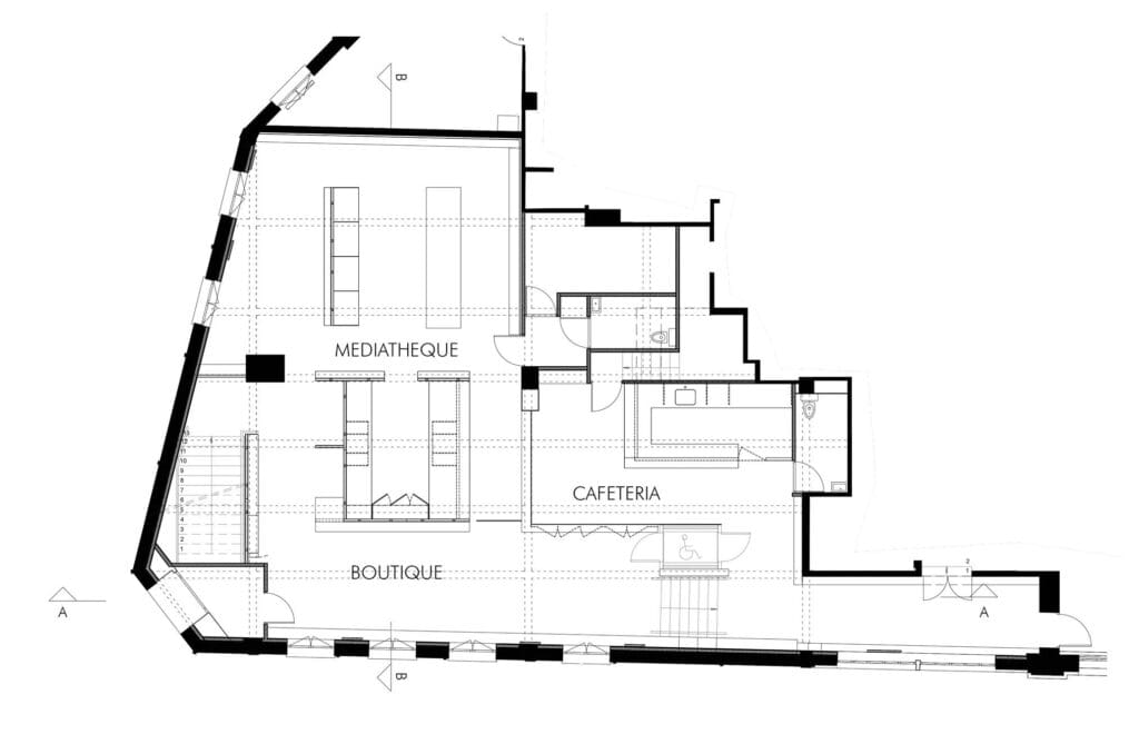 Restructuration partielle d’un bâtiment patrimonial de l’île de la Cité, au profit de la création d’une médiathèque, d’une cafétéria et d’une boutique dédiées au familles du personnel de police.