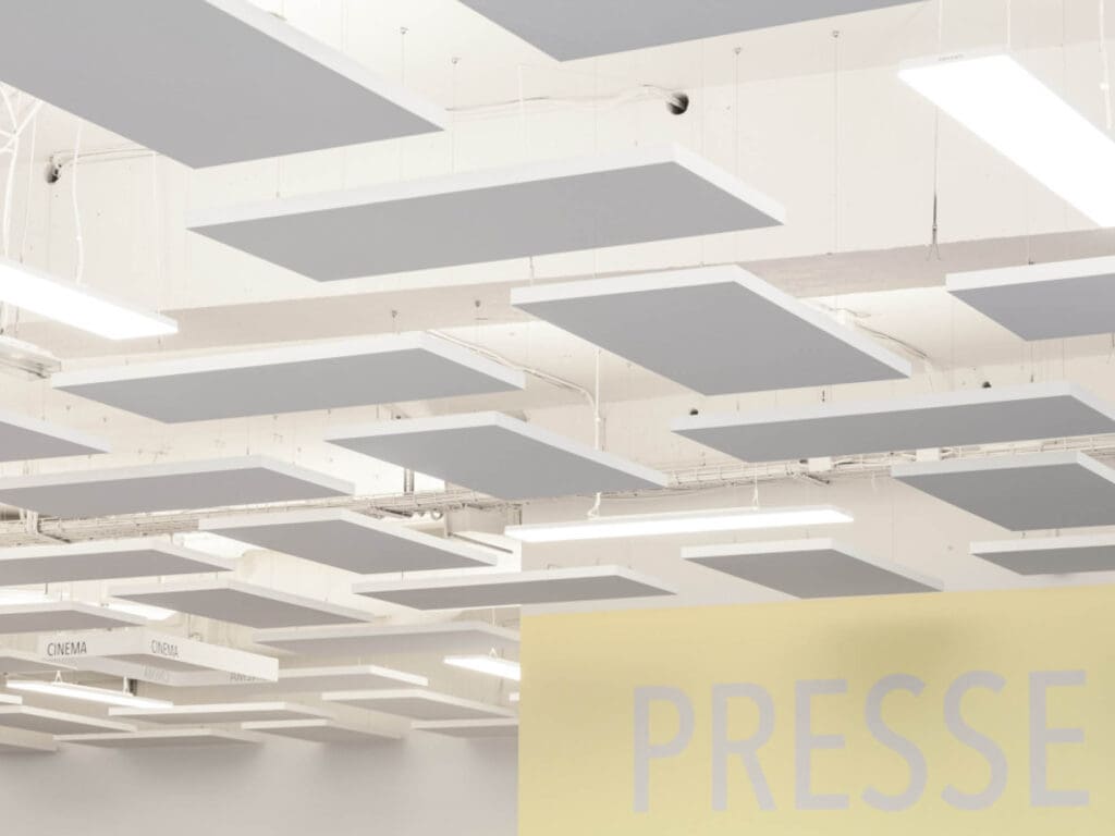 Le motif retenu adopte une double orientation parallèle aux rues Nationale et de Tolbiac, comme les résilles existantes. L’ensemble suspendu adopte sa grille géométrique propre proposant une véritable maille au plafond prenant le relais de l’ancienne. Celle-ci intègre les luminaires et reste composée de plans alternant avec des vides. Est ainsi constituée une nappe flottante acquérant un caractère immatériel, se fondant dans un fond blanc cassé participant à l’ensemble, et formant un tout monochrome en relief.