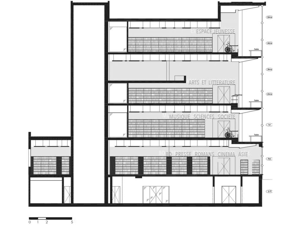 Au titre d’un rajeunissement et d’une amélioration fonctionnelle, le projet prévoit un nouvel agencement de chaque niveau, à l’aide du mobilier existant, mais avec de nouveaux meubles également, notamment destinés à une nouvelle qualité d’accueil et à l’étage dédié à la jeunesse, dont la fréquentation est nombreuse et croissante.